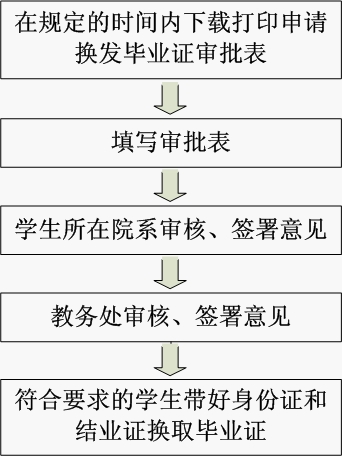 结业生申请换发毕业证书材料经教务处审核、报批,于次月月底前完成毕业证书换发相关工作,换发的毕业证书上的毕业时间和换证日期一致。
