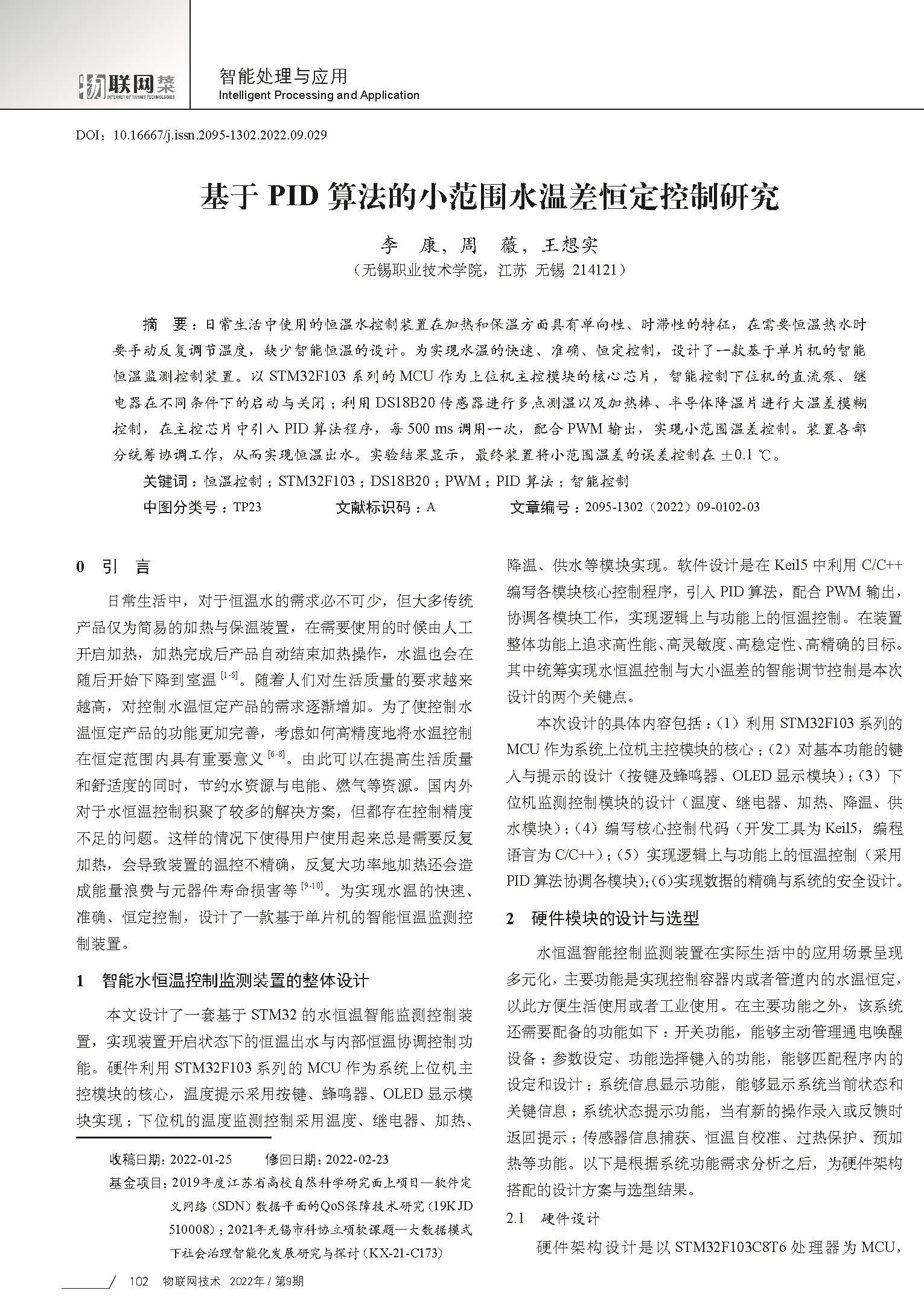 5-省级期刊论文-基于PID算法的小范围水温差恒定控制研究