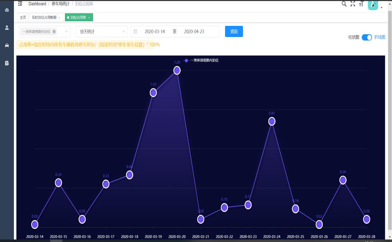 图3:某停车场占用率折线图 2、停车大数据分析平台视频