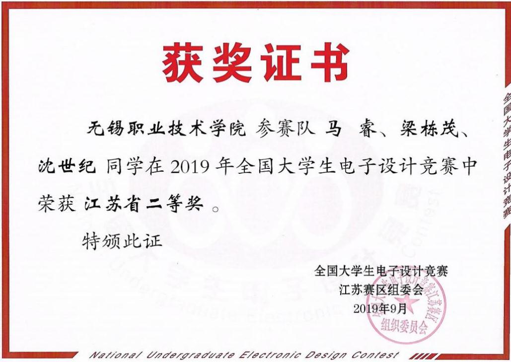 图11 江苏省大学生电子设计竞赛省二等奖 图12江苏省职业院校技能大赛省赛二等奖