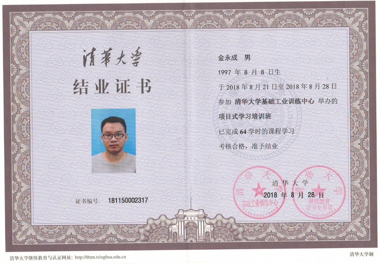 图1 清华大学培训结业证书