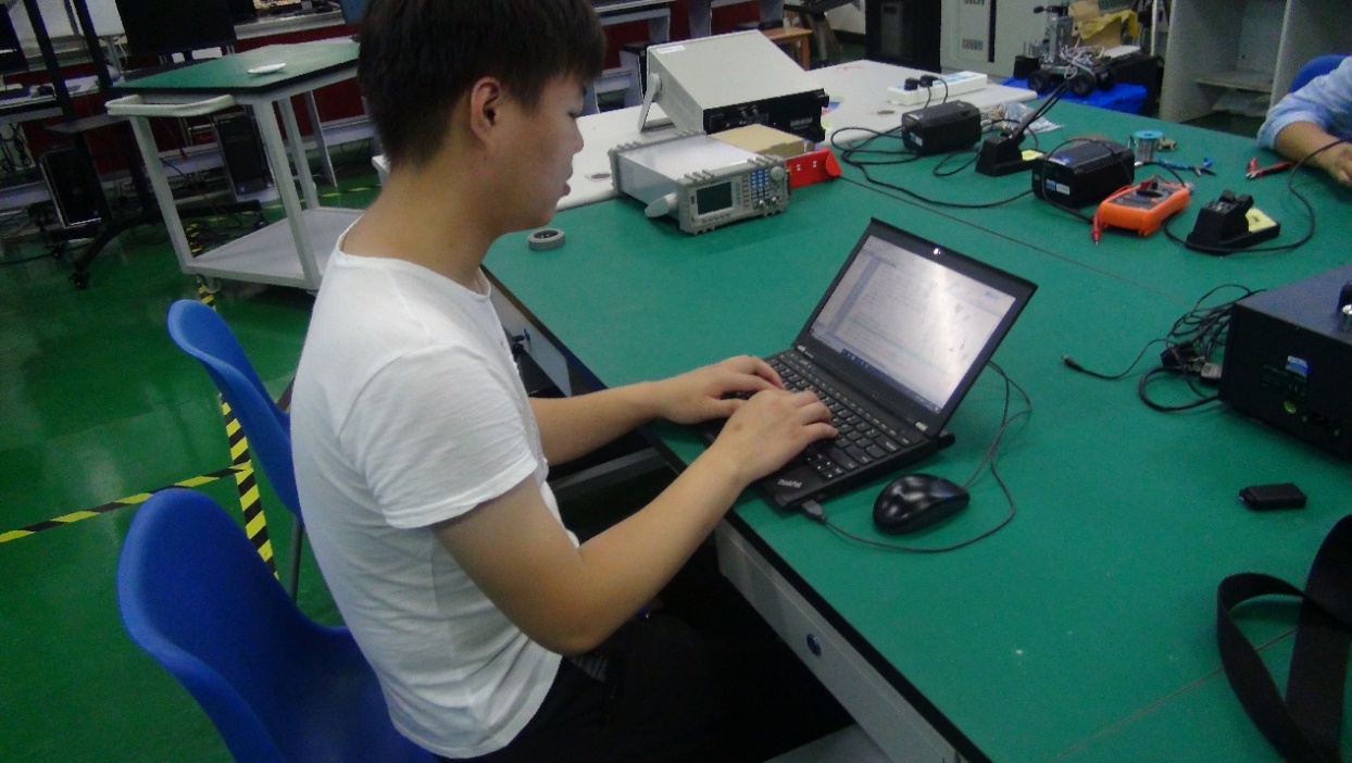 图9 团队成员叶宁在进行样机高低温测试的准备工作